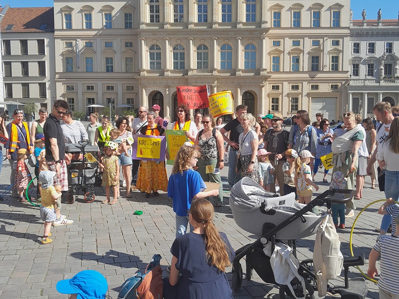 Blick auf eine der zahlreichen Aktionen vom KiTAKOLLAPS-Aktionstag 2023. Am 15. Mai 2024 steht der nächste an, wir interviewten dazu die Sprecherin...