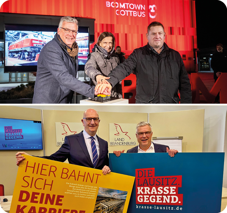 Cottbus vermarktet sich bereits seit dem vergangenen Jahr als Boomtown. Das Motto passt, steht Boomtown doch für eine Stadt, die sich aufgrund politischer oder gesellschaftlicher Veränderungen in einem plötzlichen Wachstum befindet. In Cottbus werden im kommenden Jahrzehnt über 4 Mrd. Euro Strukturmittel in Projekte wie das Bahnwerk, die Universitätsmedizin und den Forschungscampus Lausitz Science Park investiert – dabei sollen rund 15.000 neue Jobs entstehen. Die Kampagne wirbt unter www.boomtown.de für ein Hierbleiben und Herkommen.