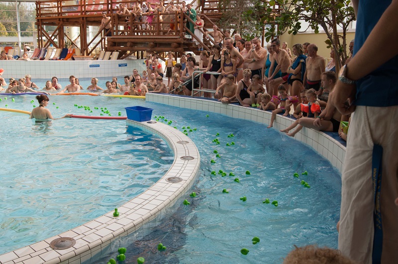 Es ist unser heimlicher Favorit im bunt gespickten Veranstaltungskalender der Spreewelten Lübbenau: das Entenrennen. In diesem Jahr ist es am 11. März soweit. Um 13 Uhr wird ein Schwarm quietschgrüner Gummienten den Strömungskanal erobern und viele kleine und große Besucher werden mit ihren Schützlingen mitfiebern. Die schnellsten Rennenten gewinnen tolle Preise – und das Schöne an diesem Event: hier schicken nicht irgendwelche Promis die Enten ins Rennen, sondern wirklich jeder Besucher kann mitmachen. Die Ente zur Teilnahme gibt es nämlich beim Eintritt an der Kasse. Jeder Gast bzw. jede Familie erhält ihre Ente mit individueller Startnummer auf der Unterseite. Für Familien empfiehlt es sich also, rechtzeitig vor Start des Rennens in die Spreewelten zu kommen, damit die Kids die „Familienente“ in den Fluten noch ordentlich trainieren können. Das Training können sie im Strömungskanal oder rund um die Pirateninsel in einem der kreativsten Kinder-Planschbereiche deutscher Freizeitbäder absolvieren, im Indoor-Spielbereich ein Trockentraining ergänzen oder sich samt Ente durch die riesige Panoramaglasscheibe beim Blick ins Pinguin-Fließ Tricks für turboschnelles Schwimmen abschauen.