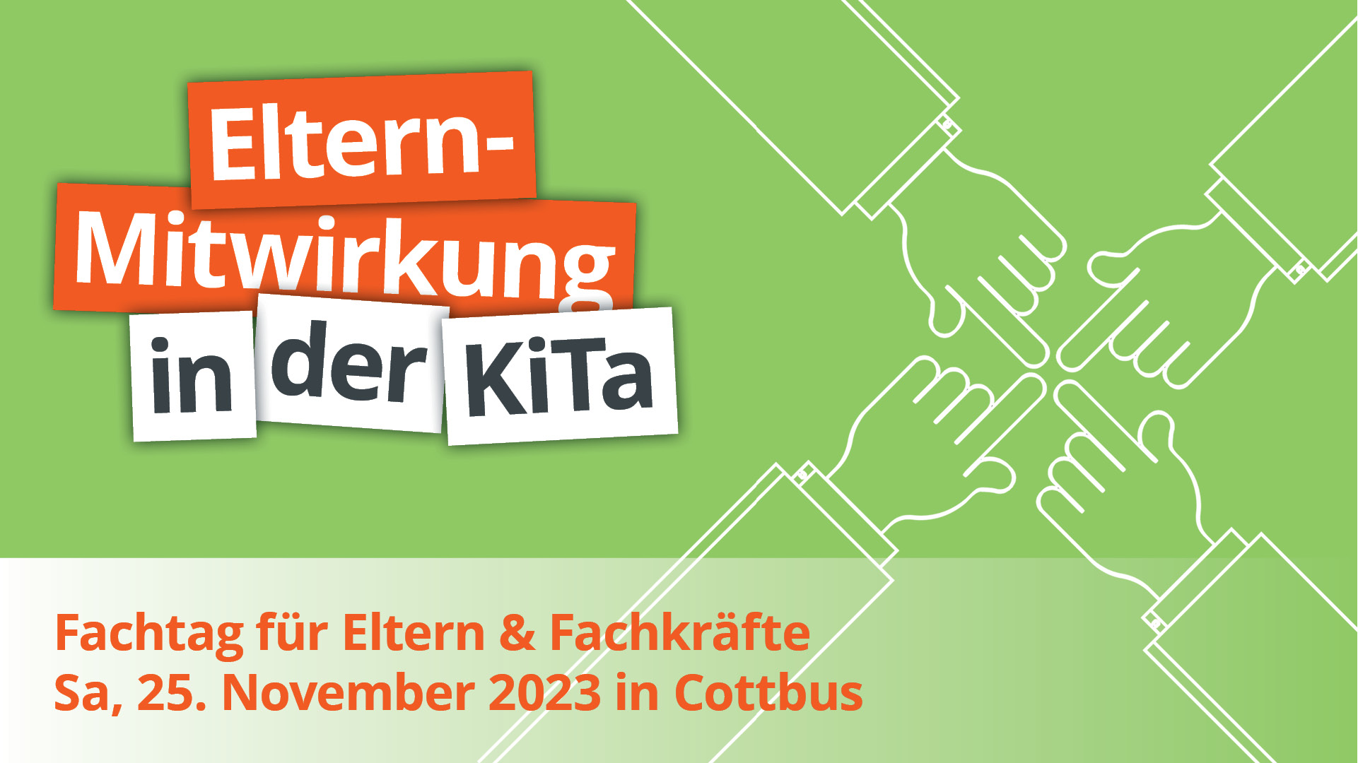 Der Landeskitaelternbeirat lädt – gemeinsam mit dem Kita-Elternbeirat Cottbus und dem Kreiskitaelternbeirat Spree-Neiße – engagierte Kita- und Hort-Eltern sowie interessierte Fachkräfte zu Vorträgen und Austausch über Fragen zur Mitwirkung vor Ort – in der Kita, in der Kommune, im Landkreis und im ganzen Land – ein.
