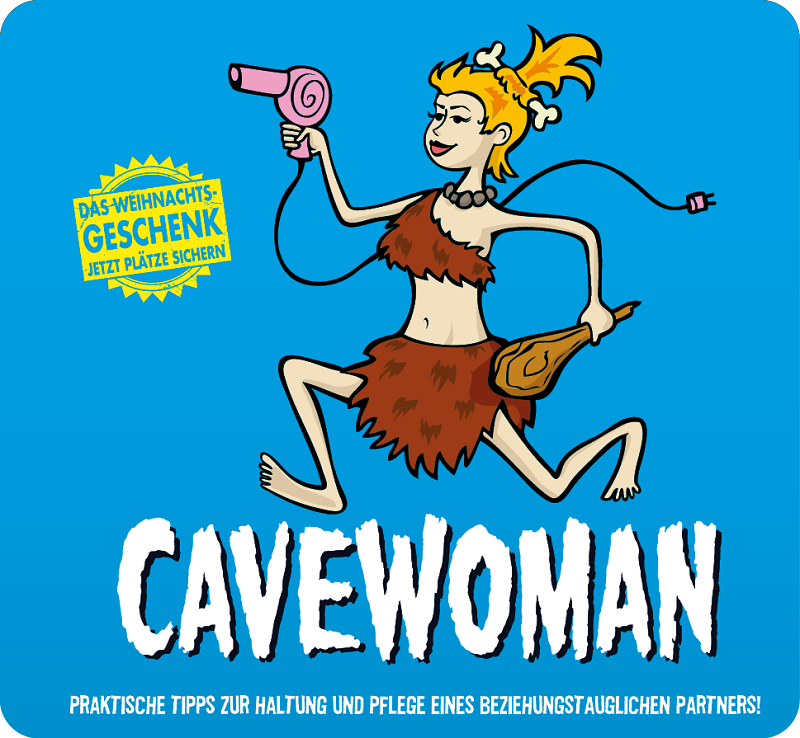 Der 12. Januar dürfte in der Alten Chemiefabrik Cottbus besten Freundinnen und toleranten Pärchen gehören. In der hochamüsanten Solo-Comedy CAVEWOMAN geht es nämlich um praktische Tipps zur Aufzucht, Pflege und Ausbildung eines beziehungstauglichen Partners – aus weiblicher Perspektive. Doch keine Sorge: CAVEWOMAN ist kein feministischer Großangriff auf die gemeine Spezies Mann – vielmehr ein vergnüglicher Blick auf das (Zusammen-)Leben zweier unterschiedlicher Wesen, die sich einen Planeten, ein Land, eine Stadt und das Schlimmste: EINE WOHNUNG teilen müssen! Erleben Sie einen Theaterabend, der Sie zum Staunen und vor allem zum Lachen bringen wird, denn eigentlich haben wir es ja schon immer gewusst: Wenn Männer so gute Liebhaber wären, wie sie denken, hätten Frauen gar keine Zeit, sich die Haare zu machen! Tickets gibt es an allen Vorverkaufsstellen und unter:
