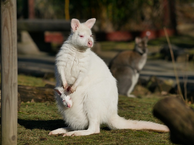 Die weiße Bennett-Känguru-Dame im Zoo Hoyerswerda hat Nachwuchs.