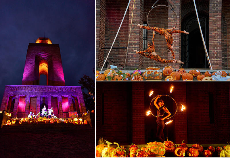 Die traditionelle Nacht der Kürbisgeister sorgt wieder für Begeisterung und ein schaurig-schönes Gänsehautgefühl. Einmal mehr werden in mystischer Atmosphäre rund um den geheimnisvoll beleuchteten Bismarckturm Hexen, Elfen und Gespenster durch ein Meer aus Licht und Feuer tanzen – immer auf der Suche nach dem am kunstvollsten und verrücktesten gestalteten Kürbis. Denn das Highlight ist wie jedes Jahr der Wettbewerb der kleinen und großen Kürbisschnitzer. Jeder kann von 14:00 bis 17:00 Uhr auf dem Schlossberghof selbst kreativ werden oder einen zuhause gestalteten Kürbis zur Bewertung einreichen. Die Abgabe der gestalteten Kürbisse findet in der Zeit von 17:00 bis 18:00 Uhr statt, zu späterer Stunde wählt das Publikum die am schönsten gestalteten Kürbisse aus und die kleinen Künstler werden mit tollen Gewinnen prämiert. Lassen Sie Ihrer Kreativität freien Lauf und gestalten Sie lustige, gruselige oder phantasievolle Kürbisse, die dann beim Wettbewerb zur Nacht der Kürbisgeister eingereicht werden können.