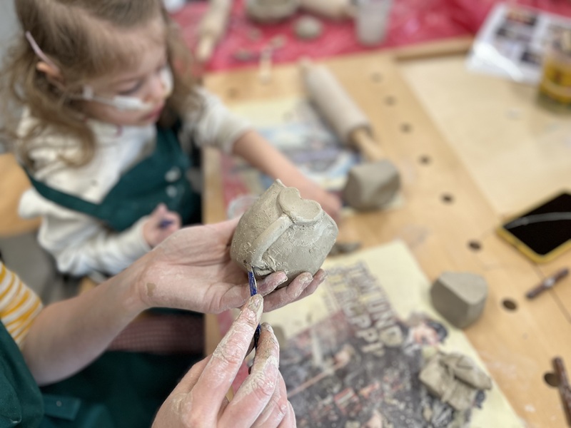 Doch der Erfolg bringt Herausforderungen mit sich: Das Werkstattgebäude hat weder fließend Wasser noch ein eigenes WC. Für Keramikarbeiten, fürs Händewaschen und für die barrierefreie Nutzung ist diese Infrastruktur jedoch dringend nötig. Bisher müssen die Kinder ins rund 20 m entfernte Kinderhaus ausweichen – keine dauerhafte Lösung, wenn die Werkstatt weiterhin allen offenstehen und dem großen Zulauf gerecht werden soll. Rund 50.000 Euro werden benötigt, um Wasser- und Abwasseranschlüsse, Sanitärbereich und notwendige Tiefbauarbeiten zu finanzieren.