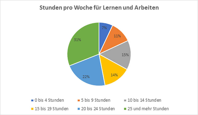 Schülerinnen und Schüler berichten von einem eher geringeren Arbeitsaufwand. 18 % der befragten im Schulbarometer gaben sogar an, 9 Stunden oder weniger Zeit zum Lernen und Arbeiten pro Woche aufzuwenden. Auf jene blicken die Bildungsforscher des Schulbarometers mit besonderer Sorge.