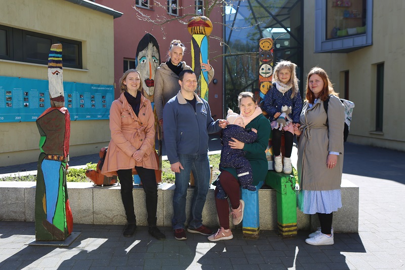 Ein Teil des Cottbuser Elternbeirats vor dem Familienhaus am Puschkinpark – mittig links: Vorstandsmitglied Ralf Schneider.