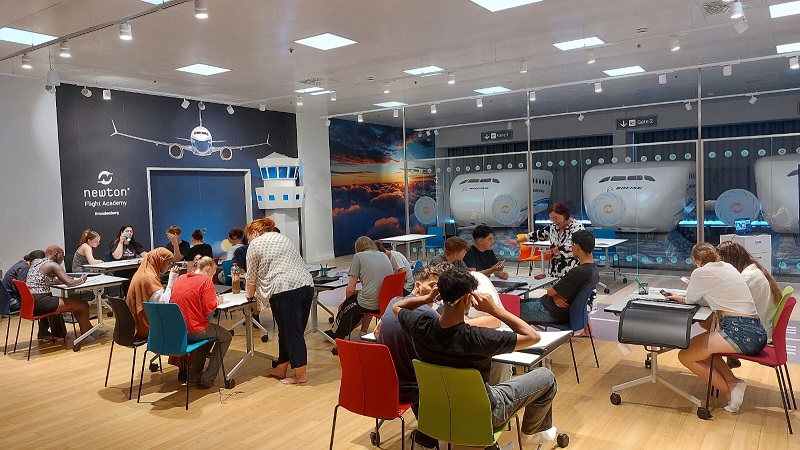 Gleich drei moderne Flugsimulatoren von BOEING stehen in der Newton Flight Academy Brandenburg in Cottbus für Missionen von Schüler:innen zur Verfügung.
