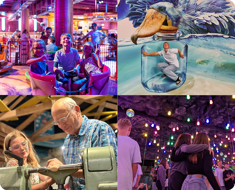 Auf über 20.000 m² im gibt es in Oskarshausen sowohl drinnen als auch draußen unendlich viel Spaß für jede Altersgruppe: Über 50 Attraktionen und Fahrgeschäfte, Spiel- und Bewegungsangebote lassen Kinderherzen höherschlagen. Doch der Freizeitpark in Freital bei Dresden ist viel mehr als nur ein Kinderspieleland! Kids insbesondere im Schulalter können dort auch Vieles selbst ausprobieren und dabei immer wieder etwas Neues lernen. Je nach Saisonzeit wird in Oskarshausen beispielsweise über verschiedene Osterbräuche und die Vielfalt der Kürbissorten aufgeklärt. In der Foto-Dauerausstellung „Illusionswelt“ können unter anderem der Umgang mit den Medien, optische Täuschungen, räumliche (Foto-)Perspektiven sowie verschiedene Kunstepochen im Fokus der Lehre stehen. Kunst wird dort besonders anschaulich, z.B. in einer immersiven 4D-Reise durch den Impressionismus, Surrealismus und Kubismus. In den Holz- und Kreativwerkstätten können sich Gruppen zu guter Letzt handwerklich und künstlerisch ausleben.