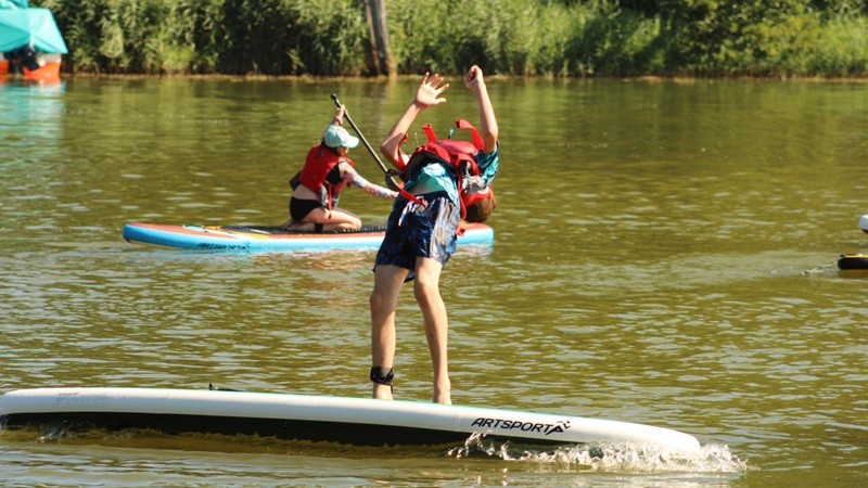 Für Kinder, die das erste Mal ein Feriencamp besuchen möchten, gibt es ein Mini-Camp. Hier gehen die Betreuer*innen besonders behutsam auf die Herausforderungen ein, die der erste Camp-Aufenthalt mit sich bringt. Für alle, die sich im Sommer mehr bewegen möchten, gibt es noch zwei Highlights: Einmal das Sportcamp, wo viele verschiedene Einzel- und Gruppensportarten warten wie zum Beispiel Badminton, Tischtennis oder Beachvolleyball. Zum anderen gibt es noch das Kanu- & SUP-Camp. Hier dreht sich alles um den Wassersport und es gibt tolle Tagesausflüge mit dem Kanu, eine Einführung in die Trendsportart Stand-Up-Paddling und vieles mehr!