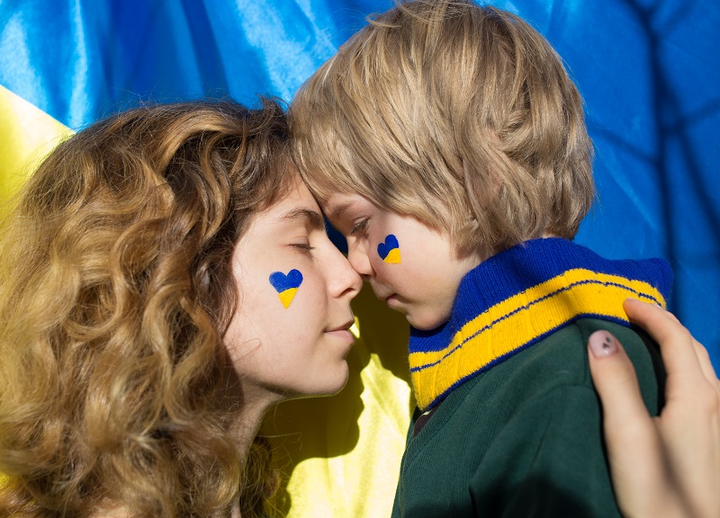 Symbolbild einer ukrainischen Familie – mit einer tatsächlich geflüchteten Mutter sprachen wir in diesem Interview. Foto: Anna, Adobe Stock