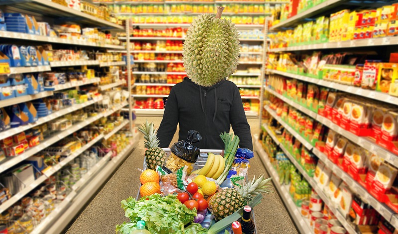 Anlass war der Geburtstag meiner Kleinen. Es ist eine gute Tradition in ihrer Klasse, dass jedes Kind zu seinem Geburtstag eine (süße) Überraschung mit in die Schule bringt. Aufgrund meiner meist abendlichen Abwesenheit als Überstundenkönig hatte sich bislang immer meine bessere Hälfte darum gekümmert. In diesem Jahr gab sie mir zu verstehen, dass ich mich da auch einmal einbringen könne. Meine Kleine stand daneben und rollte schon mit den Augen. Spontan warf ich mich in die Brust, stieg auf den Stuhl und tönte: Superdaddy wird das Geburtstagsritual an der Schule revolutionieren. Mit gesundem Naschen werde ich die Kinderherzen erobern und einen wertvollen Beitrag zur Ernährungserziehung leisten. Mit Obstspießen wird der Geburtstagsritter den Kuchendrachen erlegen. Der Applaus blieb aus, der weibliche Familienpart schaute mich gemeinsam wie einen der Klapsmühle Entflohenen an. Aber ich war mir sicher, dass man Kinder mit leckeren und exotischen Obstspießen viel mehr beeindrucken kann und machte einen Plan. Am Folgetag enterte ich die Obst- und Gemüseabteilung des besten Supermarkts der Stadt. Haben Sie sich schon einmal genau umgesehen, was es dort alles gibt? Sternfrüchte und Avocados kann ich ja noch enttarnen, aber kennen Sie Bergamotte, Cherimoya, Drachenfrucht oder Kaki (ja, Kaki gibt es tatsächlich, und ich verspreche Ihnen, es ist kein braunes Häufchen). An meinem Gesundheitsshoppingtag hatte der Supermarkt gerade Thailand-Wochen – und so schnappte ich mir auch eine sogenannte Durianfrucht mit abenteuerlich stacheliger Schale.