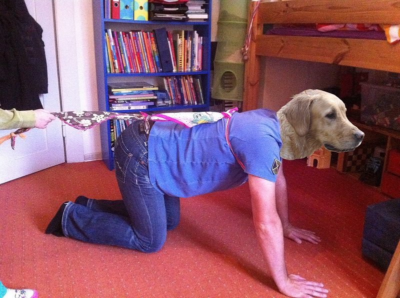 Schon beim Abschied flossen dicke Kullertränen und ab der Rückfahrt bis tief in die Nacht lief dann in unterschiedlichen Lautstärken die Endlosschliefe „Warum darf ich keinen Hund haben?“. Meine bessere Hälfte hätte das sicher schnell in den Griff bekommen, war aber ausgerechnet an diesem Abend noch unterwegs. Verzweifelt ob der Traurigkeit meiner Kleinen und am Ende meiner Kräfte und Nerven sagte ich ihr schließlich zu, ihr am kommenden Wochenende einen ganzen Tag als Haushund zur Verfügung zu stehen. Mit ihren knapp sechs Jahren ist sie ohnehin auf dem Höhepunkt der Phase, in der Kinder sich ihre Welt gern mit fantasievollen Rollenspielen erschließen. Der Pädagoge in mir klopfte sich auf die Schulter: Denn die Tränen versiegten, Papa hatte es mal selbst in den Griff bekommen – und das noch mit einer pädagogisch wertvollen Lösung.