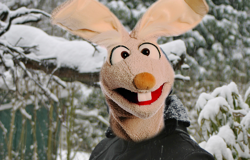 Wieder in der Wohnung angelangt, wurde den Kleinen also sofort erläutert, dass im Hof jetzt nur Hundekacke zu finden ist und der Osterhase deshalb durch unseren Garten hoppelt. Meiner Kleinen kamen sofort die Tränen: Bei dem Wetter kommt doch gar kein Osterhase, und schon gar nicht in den Garten. Mit wichtiger Miene erzählte ich ihr von Schneehasen, die sogar in der Antarktis Ostereier verteilen – da ist das bisschen Schnee für unseren Braunhasen auch ein Klacks. Als Superdaddy setzte ich noch eins drauf und versprach ihr, dass wir im Garten Osterhasenspuren entdecken werden und wir genau dann rausfahren, dass wir ihn sogar zu Gesicht bekommen. Im Internet recherchierte ich, wie Hasenspuren aussehen und besorgte von befreundeten Karnevalsfreaks deren Ganzkörper-Hasenkostüm. Dann fuhr ich voraus und machte hier und da im Garten supergroße Hasenspuren mithilfe der Tatzenabdrücke unserer größten Plüschtiere und versteckte die Geschenke. Dann zog ich schnell das Hasenkostüm an und als meine bessere Hälfte mit den Kleinen in Sicht kam, hoppelte ich auffällig aus dem Gartenweg heraus in den gegenüberliegenden Wald.