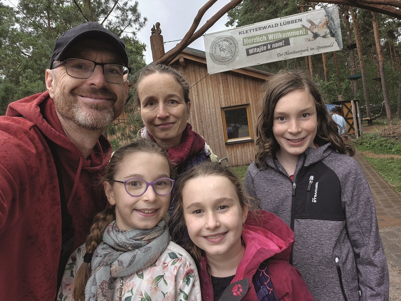 Unser dritter Familienausflug für die lausebande führt uns in den schönen Spreewald. Wir testen den Kletterwald in Lübben. Für uns und die Kinder ist es eine Premiere, wir waren zuvor noch nie in einem Kletterwald. Auch wenn wir daher keinen Vergleich haben, lautet unser Fazit: Der Lübbener Kletterwald ist echt top. Er bietet eine große Klettervielfalt auf unterschiedlichen Niveaus, er ist super schön gestaltet – mit liebevollen Details wie kleinen Baumgeistern und einem Fotopoint. Ideal ist auch die Lage im Spreewald. Wer vormittags klettert, kann am Nachmittag noch Lübben erkunden oder ein Kahntour durch die Spreewaldfließe machen. Auf die grüne Oase nehmen gleich zwei Kletterelemente Bezug. An einer Stelle balancieren wir durch einen Kahn, und an einer anderen gilt es zwei Spreewälder Gurken zu überwinden.