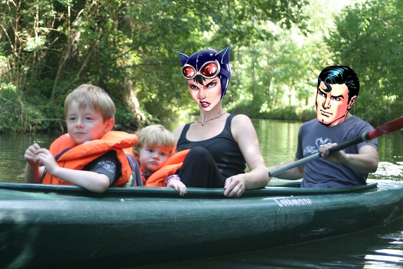Ausgerechnet in der Nacht zum Samstag hatte sich meine Frau verlegen, Sitzen war okay, aber an Paddeln war nicht zu denken. Beim Frühstück machten unsere Kinder lange Gesichter, denn sie prophezeite, dass der blasse Büro-Papa die 20 Kilometer nie und nimmer schafft. Da warf ich mir die blaue Tischdecke über den Rücken, stieg auf den Stuhl und rief: SuperDaddy schaukelt den Kahn schon allein, 20 Kilometer sind ein Klacks! Der Familienausflug ist jetzt Chefsache, Olé! Ich hätte schwören können, dass ein Supermanzeichen auf meiner Brust brannte. Die Kinder strahlten, meine Frau verdrehte die Augen.