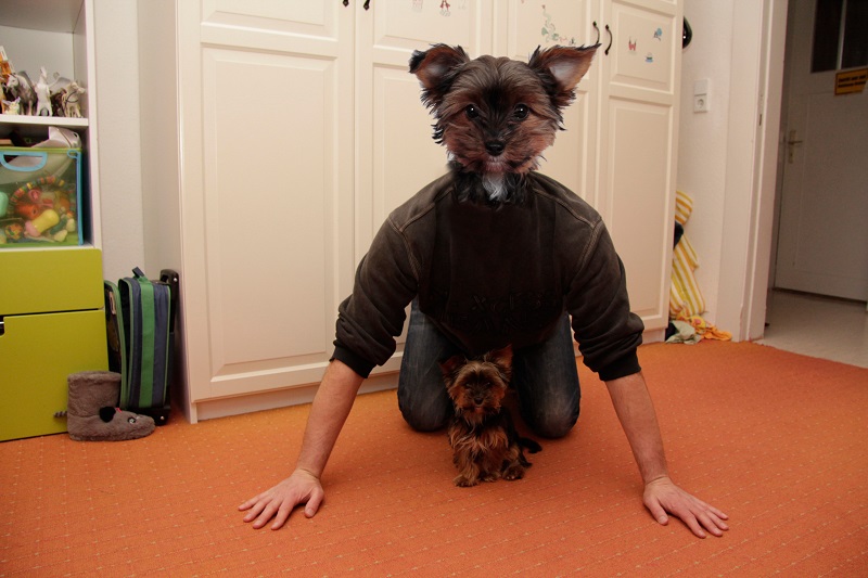 Ich dachte immer, ich könnte als treusorgender und manchmal wahrscheinlich auch treudoofer Vater niemandem auf der Welt so viel verzeihen, wie meinen eigenen Kindern. Da hatte ich die Rechnung ohne ein hundgewordenes Zwergkaninchen namens Yorkshire Biewer Terrier gemacht. Genau ein solcher ist vor einigen Wochen bei uns eingezogen. Der kleine Hund war unsere äußerst konsequente Antwort auf eine beständige Tonschleife von einem gefühlten Jahrzehnt, in der unsere kleine Tochter sich immer wieder einen Hund wünschte, weil sonst bald die Welt untergeht. Sie war aber auch so beharrlich, dass selbst die Majas nachgegeben hätten. Jedenfalls darf ich jetzt immer eine Viertelstunde früher aufstehen und dann bewegen sich in der Dämmerung zwei zerzauste und übel aus dem Mund riechende Gestalten auf den Hof. Fürs Einsammeln der Hinterlassenschaften werde ich auf dem Rückweg ordentlich abgeschleckt.