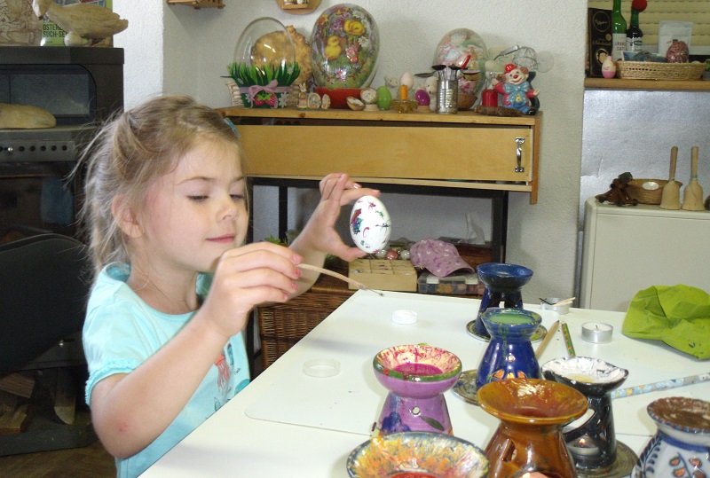 Wie Marielena, Urenkelin von Johann Jatzwauk, dem sorbischen Volkskünstler und Trachtenspezialisten, kann auch Ihr Kind Ostereier verzieren. Foto: Andrea Paulik