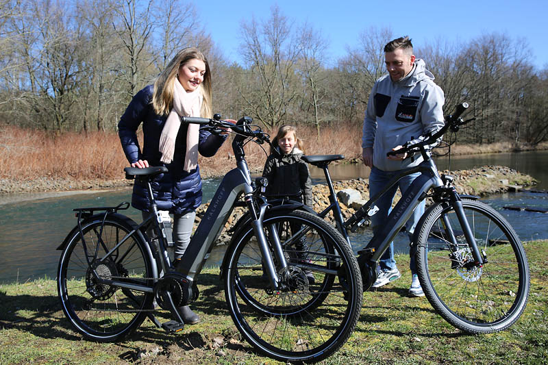 Wir schickten Familie Friedrich „on tour“ – die dreiköpfige Lausebande erhielt von uns das Kalkhoff City E-Bike Endeavour 5.B Advance als Tiefeinsteiger und Trapez Rahmen, um die Räder auf Herz und Nieren zu testen. Das Elektrofahrrad unterstützt das Treten in die Pedale mit einem 250 Watt starken Mittelmotor, der ein schnelles Beschleunigen und müheloses Berganfahren ermöglichen soll. Mit Helmen und Proviant ausgestattet ging es für die Friedrichs u.a. auf unwegsames Gelände in der Natur, aber auch auf alltägliche Strecken über Asphalt.