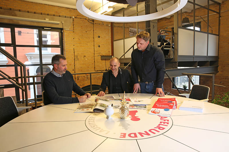Die Initiatoren bei einer Projektbesprechung zu Seilbahn und Schiffbau: Tobias Schick, Jens Taschenberger und Marcel Linge (v.l.n.r.).