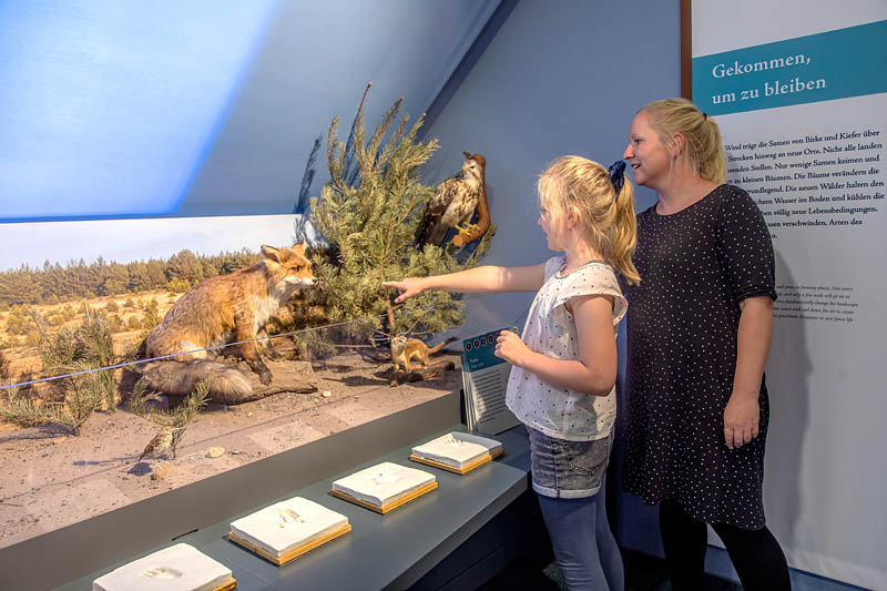 Schon der Ort des Besucherzentrums im Naturpark Niederlausitzer Landrücken atmet Geschichte. Das letzte Haus des Dorfes, das die Bagger stehen ließen, ist heute das Erlebniszentrum der Heinz Sielmann Stiftung. Es beherbergt Ausstellungen zur Landschaft und ihren Tier- und Pflanzenarten, zu den „verschwundenen Orten“ sowie zum Leben von Heinz Sielmann. Für Kinder vermutlich noch spannender ist der Außenbereich mit Bienenlehrpfad,