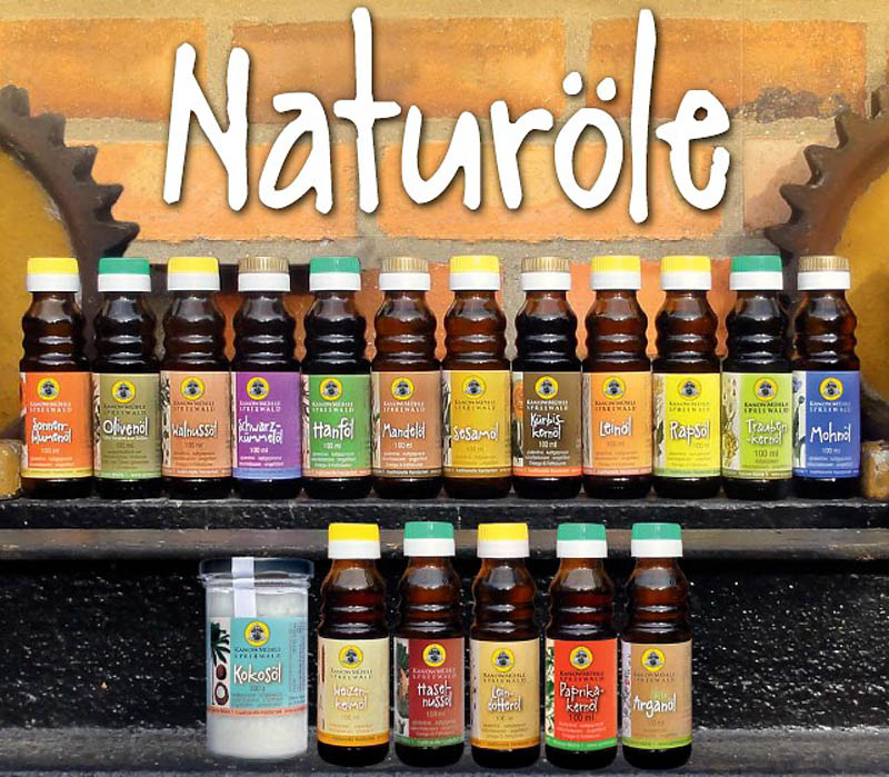 Zu den hergestellten Ölen zählen Klassiker wie z.B. Leinöl und Kürbiskernöl, aber auch exotischere Öle, wie Kokosöl, Schwarzkümmelöl und Weizenkeimöl. Insbesondere beim Leinöl, dem Hanföl und dem Weizenkeimöl steht neben dem Geschmack immer mehr der ernährungsphysiologische Charakter im Vordergrund. So verfügen sie über hohe Anteile mehrfach ungesättigter Fettsäuren, die für eine ausgewogene Ernährung essentiell sind und zahlreiche positive Effekte auf das Herz-Kreislauf-System, den Cholesterinspiegel und das Gehirn haben können. Zudem verfügen sie über Vitamine, Aminosäuren und – nicht zuletzt – einen tollen Geschmack, der vielen Gerichten eine einzigartige kulinarische Note gibt.