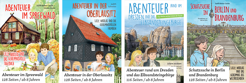 Da dürfen natürlich auch unsere tollen Urlaubsregionen vor der Haustür nicht fehlen. So spendierte Biber & Butzemann bereits dem Spreewald und der Oberlausitz eigene Lesewelten. Schmökerabenteuer gibt es auch rund um Dresden und das Elbsandsteingebirge, sowie in Berlin und Brandenburg zu erleben. Auf stets rund 128 Seiten unternehmen Kids im Grundschulalter dabei Reisen quer durch die entsprechenden Landstriche, lernen regionaltypische Besonderheiten kennen und bekommen Inspirationen für den nächsten Familienhalt.