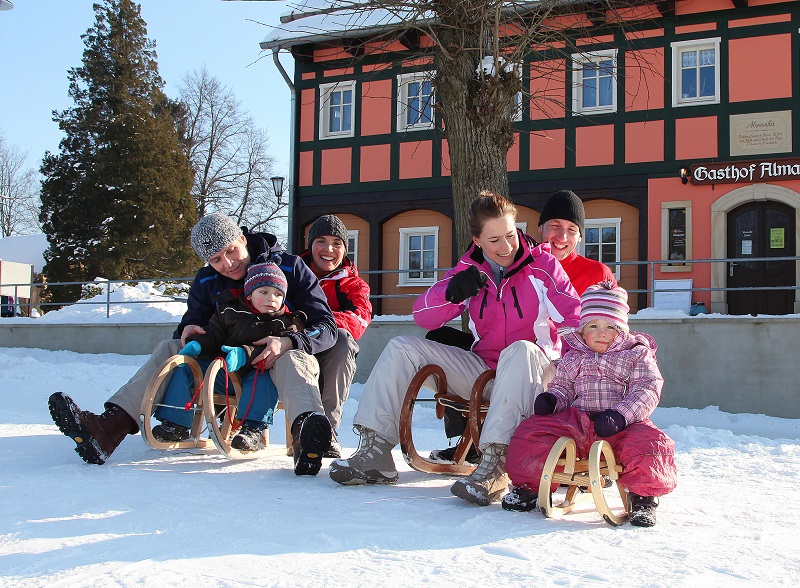 Winterspaß im Umland: Mit dem Rodelpark Oderwitz, der Eishalle Jonsdorf oder dem Schmetterlingshaus bieten sich in der Umgebung zahlreiche weitere Ziele zum winterlichen Ausflug an.