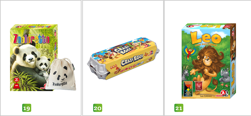 Verlag: franjos, Spielerzahl: 2 bis 4, Spielzeit: 15 min, ab 5 Jahren, Preis: ca. 40 Euro