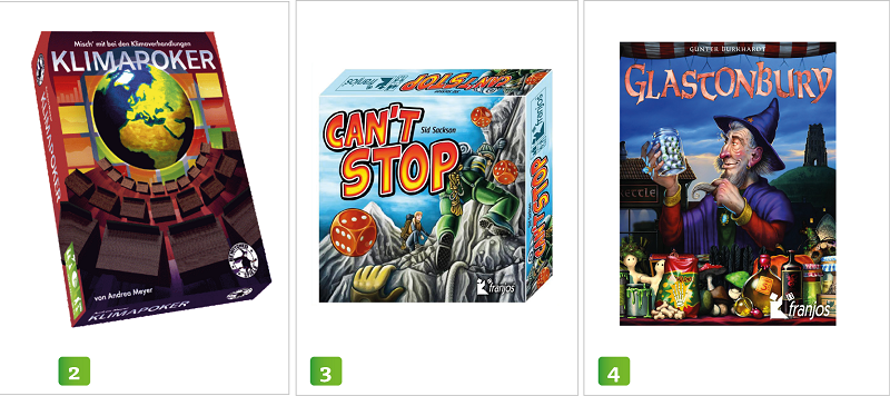 Verlag: franjos, Spielerzahl: 2 bis 4, Spielzeit: 30 min, ab 8 Jahren, Preis ca. 20 Euro