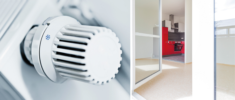 Heizen: Ein sehr einfacher und effektiver Tipp ist das Freihalten der Heizungen: Vermeiden Sie Möbel oder Gardinen direkt an der Heizung. Einsparen lässt sich auch durch konstantes Heizen: Das ständige Auskühlen und Wiederaufheizen ist teurer als das Halten einer abgesenkten Durchschnittstemperatur. In Schlafräumen werden mindestens 18 Grad empfohlen, in Wohnräumen 20 Grad. Regelmäßiges Lüften hilft ebenfalls. Dabei wird die Luftfeuchtigkeit in der Wohnung reduziert. Trockene Luft lässt sich leichter warmhalten als feuchte. Wichtig: Stellen Sie die Heizungen während des Lüftens auf die Frostschutzstellung (Schneeflocken-Symbol).