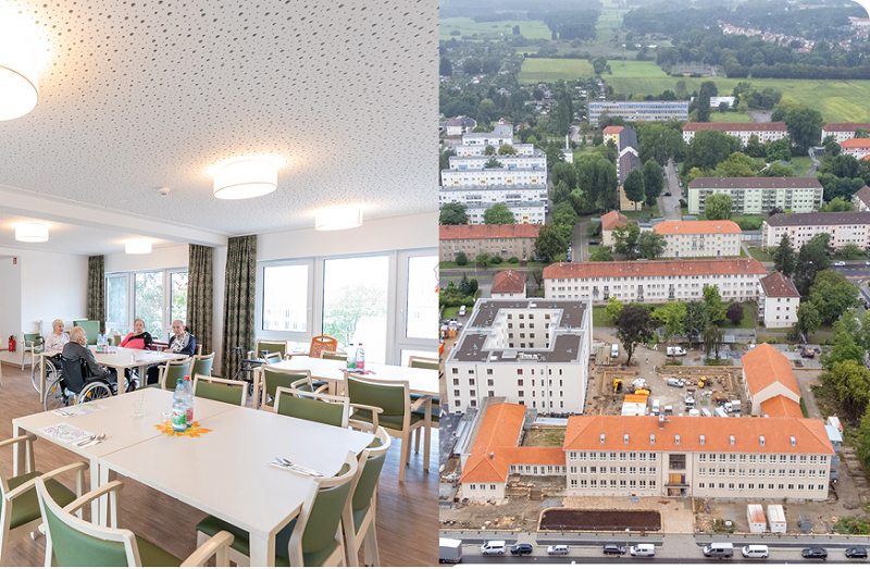 sind auch hier alle Leistungen unter einem Dach beheimatet. Ein moderner Neubau schuf komfortable Räume für insgesamt 82 Pflegeplätze im Pflegeheim „Auguste Deter“. Im ehemaligen Schulgebäude entstanden aus einstigen Klassenräumen 18 barrierefreie Mietwohnungen im betreuten Wohnen. Zusätzlich ergänzt eine Tagespflege sowie der hauseigene Beautysalon mit Kosmetik, Fußpflege und Massagen das Angebot.