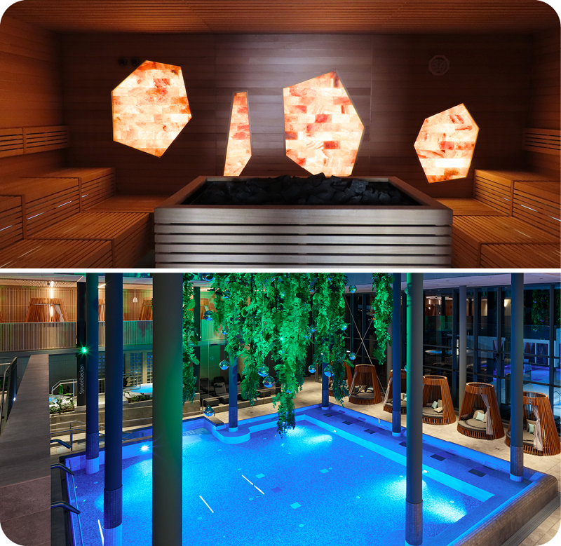 Das WONNEMAR Bad Liebenwerda bietet in seiner großzügigen Wellnesslandschaft vielfältige Angebote zur Erholung. Die Saunawelt verbindet die Vorzüge traditioneller Saunakultur mit modernen Akzenten. In sechs verschiedenen Saunen und einem Dampfbad können Besucher unterschiedliche Wärmegrade genießen. Regelmäßige Aufgüsse mit besonderen Düften machen den Aufenthalt zu einem Erlebnis für alle Sinne. Zwischen den Saunagängen stehen weitläufige Ruhebereiche und ein Außenbereich zur Verfügung, um in natürlicher Umgebung zu entspannen. Für Entspannung sorgt auch das einzigartige Physiotherm Infrarot Kino mit einem multimedialen Erlebnis der besonderen Art. Ebenfalls zum Entspannen lädt der Thermalbereich Mineralforum ein und bietet eine besondere Auszeit für alle, die die wohltuende Wirkung von Wasser erleben möchten. Die Gäste können im großzügig angelegten Innenbereich mit Thalasso-, Mineral- und Kaskadenbecken sowie zwei Whirlpools und in zwei Außenbecken das angenehm warme Wasser genießen. Darüber hinaus sorgen Sprudelliegen und Massagedüsen für Erholung.