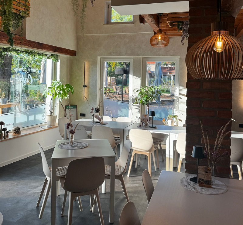 Das Kaffeehaus ist das Projekt eines Unternehmens mit grüner Denke und Familiensinn samt fünf eigenen Kids. Zur Ökologie kommen so auch Kinderspielecke und Spielplatz – und vor allem hochwertiger, gesunder und auch kindgerechter Genuss hinzu. Ob Frühstück, Porridge, Pancakes, Kartoffeln & Quark oder herzhafter Wildkräutersalat – hier werden ganztägig regionale, leichte Speisen serviert. Bei all dem wird Wert auf herausragende Qualität gelegt. Es wird frisch gebacken, die geschmackvollen Kaffeespezialitäten stammen aus fair gehandelten Bohnen einer Privatrösterei und einer hochwertigen Siebträgermaschine. Auch leckere Waffeln werden frisch hausgemacht. Bei Sonne sitzt man auf einer schönen Terrasse – und wer will, leiht sich nebenan für einen umweltfreundlichen Ausflug E-Scooter oder gleich einen Elektroporsche – der elektromobile Verleih von Luxusmobilen gehört nämlich ebenso zum Familienunternehmen mit grüner Denke.
