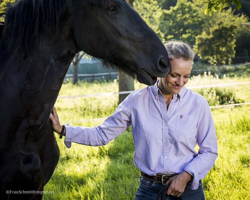 Ich war schon immer tieraffin und bin mit Pferden groß geworden. Meine Großmutter hatte eine Pferdezucht und das Thema hat mich nie losgelassen. Ich war auch bei Reitlehrern, die mit Peitsche und Gerte gearbeitet haben. Schon als Jugendliche habe ich mir gedacht: Das kann doch nicht der einzige Weg sein, um mit Pferden zusammenzuarbeiten. Mittlerweile bin ich sehr froh und dankbar, genau das selber erforschen und weitergeben zu können.