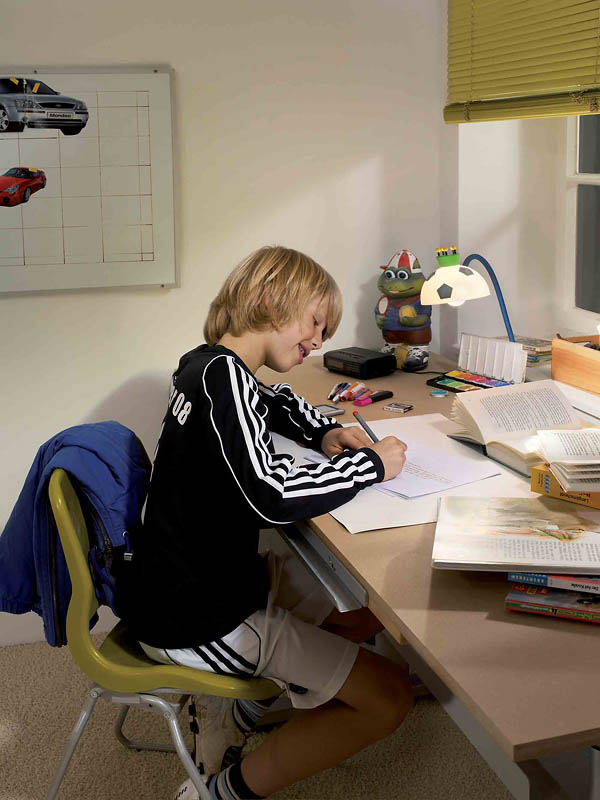 Vor allem am Schreibtisch ist eine gute Beleuchtung wichtig. Bei Rechtshändern sollte das Licht von links kommen, bei Linkshändern von rechts, um störende Schatten beim Schreiben zu vermeiden. © licht.de