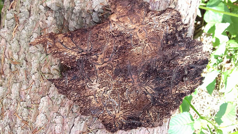 Insektenbefall – hier die Fraßspuren eines Borkenkäfers – war 2018 nach Sturmschäden die zweithäufigste Ursache für Schadholzeinschlag. Foto: FNR