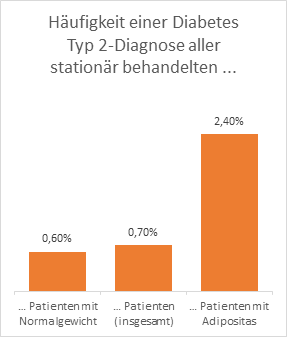 Rund jeder Zweite mit starkem Übergewicht erkrankt früher oder später an Typ 2 Diabetes und in der Folge an weiteren schweren Erkrankungen, die überproportional häufig im Krankenhaus behandelt werden müssen. Quelle: statista (2014)