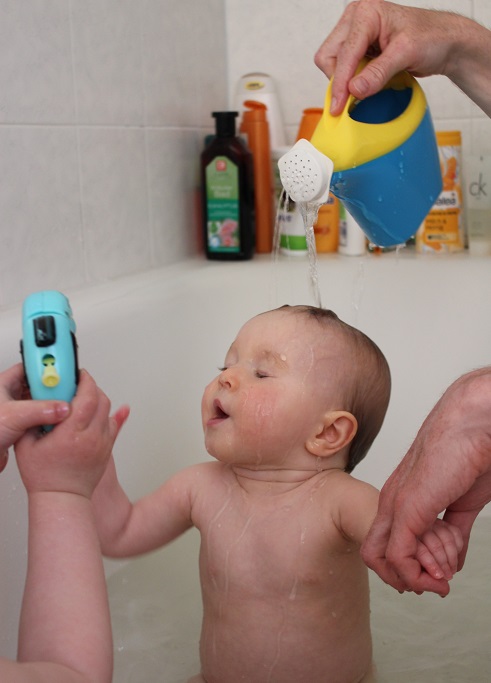 Augen schützen: Meist lässt es sich nicht vermeiden, dass beim Haarewaschen etwas Wasser oder Shampoo ins Gesicht oder gar in die Augen gelangt. Das ist nicht weiter schlimm, die Kinder mögen es trotzdem nicht. Um das zu vermeiden, sind hier ein paar Tipps: beim Abduschen eine Schwimmbrille oder einen trockenen Waschlappen über die Augen geben; einen speziellen Haarwaschbecher mit einem weichen, flexiblen Rand nutzen; das Kind bitten, den Kopf möglichst weit nach hinten zu strecken; statt Dusche eine kleine Gießkanne oder einen Becher zum Haare waschen nutzen.