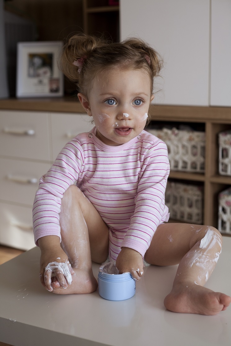 Babys Haut ist noch sehr zart und dünn. Die natürliche Käseschmiere, mit der sie zur Welt kommen, schützt das Kind und sollte möglichst nicht abgewaschen werden. Da Babys von Natur aus gut riechen, raten die meisten Experten zur Zurückhaltung bei der Anwendung von Kosmetika: Praktisch heißt das: nur selten baden, am besten ohne Badezusatz. Eincremen oder Einölen nach dem Baden oder Waschen ist nur bei Babys nötig, die sehr trockene Haut haben oder an Neurodermitis leiden. Bei der Wahl der Pflegeprodukte auf möglichst wenig Zusatzstoffe achten.