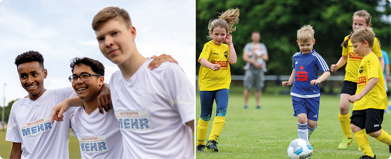 Vereinssport stärkt das Gemeinschaftsgefühl und gibt Selbstvertrauen. links © VR Bank Lausitz eG, recht © Steve Seifert, Cottbuser Ostseesportverein