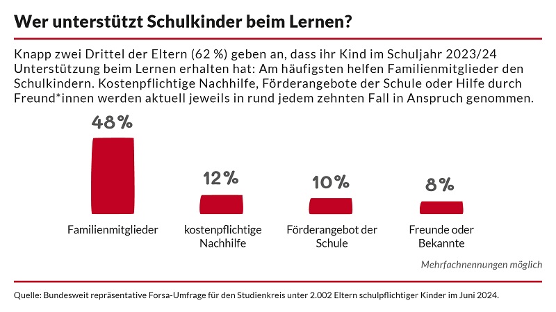 Der Nationale Bildungsbericht 2024 bestätigt ebenfalls, dass Bildungserfolg in Deutschland stark abhängig ist von der sozialen Herkunft. Das bezieht sich auf die Lesekompetenzen, auf die Nutzung von Ganztagsangeboten und bildungsbezogenen Freizeitaktivitäten wie Musikschule oder Sportverein und auf den Übergang zur weiterführenden Schule: „Bei gleichen Leistungen und Noten gehen 44 % der Kinder aus sozioökonomisch benachteiligten Familien an ein Gymnasium über, während es unter Kindern aus privilegierten Familien 58 % sind.“ Es sind auch vermehrt Kinder aus sozial schwachen Familien, die ihre Schullaufbahn ohne Abschluss beenden.