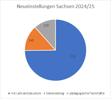 Ein Hauptgrund für den häufigen Ausfall sind die fehlenden Lehrkräfte und der hohe Krankenstand. Das wird sich kurzfristig nicht bessern. Sachsen startet mit gut 1.000 Neueinstellungen ins neue Schuljahr – weniger als erhofft, wobei das Bildungsministerium keine Zahlen nennt, wie viele Lehrkräfte es gern eingestellt hätte. Stattdessen wird im Herbst der tatsächliche Bedarf an den Schulen erfragt und dann veröffentlicht. Im vergangenen Schuljahr gab es 1.120 Neueinstellungen, man hätte aber 2.200 gebraucht. Die Gewerkschaft Erziehung und Wissenschaft geht von einem Bedarf von etwa 3.500 Neueinstellungen für dieses Schuljahr aus – rechnet aber deutlich großzügiger als das Ministerium. In Brandenburg waren die Zahlen der Neueinstellungen zum Redaktionsschluss noch nicht bekannt. Die Länder setzen weiterhin auf das Modell Seiteneinstieg, um die große Lücke zu füllen. Von den 1.033 Neueinstellungen in Sachsen haben 773 ein Lehramtsstudium abgeschlossen – das entspricht 75 Prozent.