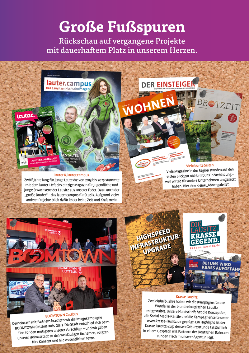 Meilensteine, Fußspuren, Projekte, Taten, Storys und mehr