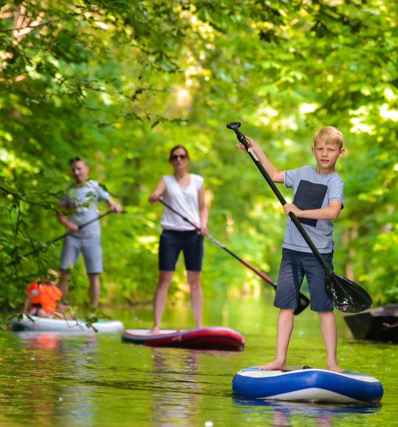 Wohl nirgends können Familien Stand Up Paddling so einfach und magisch erleben wie im Spreewald. Die ruhigen Fließe machen das Stehpaddeln für Kids ab 8 Jahren problemlos. Martin Fix gilt als SUP-Pionier des Spreewalds und hat neben vielen hochwertigen Boards auch die passenden Einsteigerkurse im Angebot. Man kann zwischen 30 Min.-Crashkurs für 10 Euro und einstündigem Anfängerkurs für 35 Euro wählen. Ein hochwertiges Board samt Paddel, kleiner Einweisung und wasserfester Karte kostet pro Stunde und Person 10 €, pro Tag 50 €. Vor allem gibt es aber die richtigen Tourenvorschläge, das ist insbesondere für Familien wichtig, die von Kähnen viel befahrene Fließe eher meiden sollten. Man kann bei Martin Fix auch geführte Touren buchen, bspw. im Sonnenuntergang genießen mit speziell entwickelter Unterwasserbeleuchtung an den Boards. Familien können auf Anfrage auch individuelle, geführte Touren buchen.