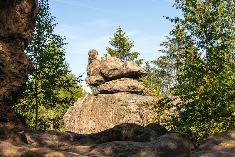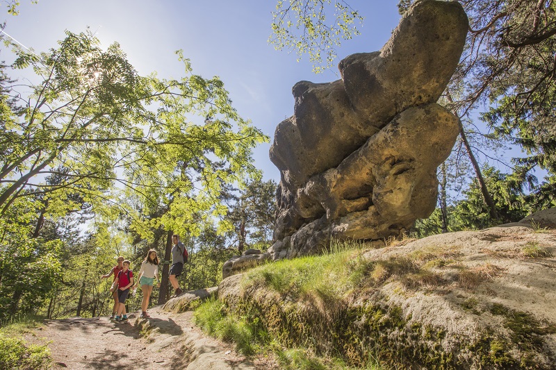 Ob Mausefalle, Elefantensteine oder Fuchskanzel: die Felsgebilde tragen Namen, die Kinder sofort neugierig machen. Besonders eindrucksvoll sind die Jonsdorfer Mühlsteinbrüche, wo die Steine „Orgel“ oder „Teekanne“ heißen. Ein Teil des Weges zwischen Kurort Oybin und Töpfer ist sogar kinderwagentauglich – perfekt für Familien mit jüngeren Kindern. Rund um die Fuchskanzel in Lückendorf lässt sich die Tiersuche wunderbar mit einem Abstecher zur Burgruine Karlsfried verbinden.