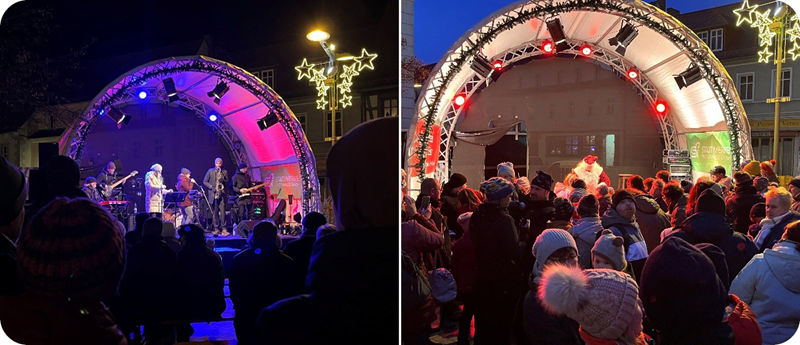 Vom 12. bis 14. Dezember verwandelt sich der Finsterwalder Marktplatz in ein glitzerndes Winterwunderland – perfekt für Familien. Das große Bühnenprogramm bietet an allen drei Tagen tolle Highlights, darunter der Finsterwalder Sängerkarneval am Freitag, mehrere Kita- und Schulauftritte, Tanzshows und die Uraufführung von „Weihnachten bei Familie Pröpke“ am Samstag. Am Sonntag sorgt Theo Tintenklecks für herzliches Kinderlachen, und natürlich schaut auch der Weihnachtsmann vorbei. Speziell für Kinder gibt es ein beheiztes Zelt mit Hüpfburgen, Bastelständen, Kinderschminken, Wunschzettelbox sowie Karussell und Ponyreiten. Knapp 20 Stände präsentieren sich auf dem Marktplatz mit süßen und herzhaften Leckereien sowie handgemachten Geschenken – darunter der Sängerfestverein, der erstmals in seine „Glühlounge“ einlädt.