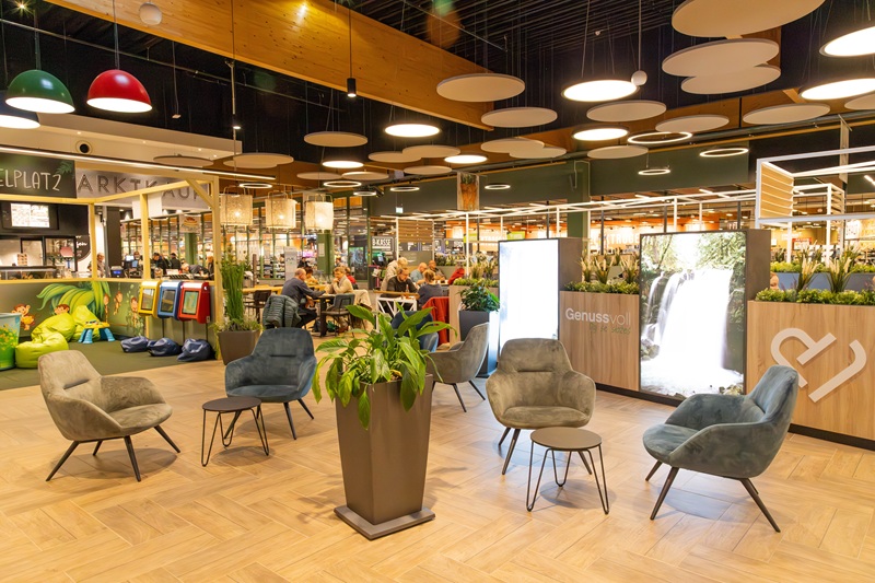 Zuvor oder danach – und natürlich auch an jedem anderen Werktag – kann man in den Geschäften des neuen Centers nach Geschenken oder der einen oder anderen Weihnachtsüberraschung stöbern. Das große Einkaufszentrum erstrahlt seit diesem Jahr in neuem Glanz und bietet in einer Vielzahl von Geschäften alles unter einem Dach. Hier können vor allem Familien bequem einkaufen und die Vielfalt des Angebots nutzen – während die Kids hier und da ihren Spaß haben. So finden die Kleinen im zentralen und weitläufigen Food Court auf einer Spielinsel Beschäftigung und Abwechslung, umsäumt von gemütlichen Sitzbereichen, sodass Eltern einmal entspannt genießen können und ihre Kids dabei immer im Blick haben. Und das lohnt sich wirklich – denn der Food Court liefert viel mehr als die schnelle Gastronomie vieler Einkaufscenter und lädt die ganze Familie zu einer kulinarischen Reise ein. Die breite Auswahl an Speisen und Getränken ist perfekt für eine Pause zwischendurch oder ein gemütliches Essen mit Freunden und Familie.