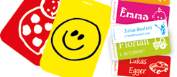 mit Namensaufklebern, Bügeletiketten und Tex-