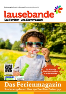 Aktuelles :: Seite 5 Zu einem richtigen Sommermagazin für Familien gehören natürlich auch viele Ausflugstipps mit dem Prädikat „familiengeeignet“. In diesem Jahr stellen wir sowohl für gutes Wetter als auch für Regentage ausgewählte Ausflugsideen für den Sommer in Lausitz & Spreewald sowie das klasse Projekt „Cottbuser FerienSpaßPass“ vor. Zudem bietet unser Ferienmagazin für jedes Feriengebiet gleich auf der Einstiegsseite Hinweise zu Planungshilfen für Familien im Internet, dort können Sie beispielsweise nach Unterkünften und aktuellen Veranstaltungen recherchieren. Tipp: FerienSpaßPass In Cottbus und Umland bieten 16 Partner Familienvorteile mit dem Cottbuser FerienSpaßPass an. Der Pass kostet bei der Erstnutzung lediglich 1 Euro und bietet dann Vorteile imWert von weit über 80 Euro. Infos zu dem kleinen Pass, der sogar noch einem guten Zweck dient, finden Sie ab Seite 56. www.ferienspasspass.de | www.familien-ferien-lausitz-spreewald.de IMPRESSUM HERAUSGEBER & VERLAG zwei helden GmbH: Görlitzer Straße 17-18, 03046 Cottbus, Tel. 0355 2892520 /-22 www.zweihelden.de, info@zweihelden.de Geschäftsführer: Jens Taschenberger (V.i.S.d.P.) Redaktion: Jens Taschenberger, Jonas Köhler, Anett Linke, Amadeo Löder, redaktion@lausebande.de Anzeigenleitung: Jens Taschenberger Tel. 0355 289252-20 jt@zweihelden.de Anzeigenpreisliste:Nr. 1/2011 vom 17.2.2011 SATZ/LAYOUT Büro 68, Heiko Jaehnisch www.buero68.de TITELFOTO wundervisuals, www.istockphoto.com DRUCK Druckzone, Cottbus VERTRIEB Eigenvertrieb imVerlag zwei helden, kostenfrei an ca. 400 Auslagestellen in Cottbus, Burg, Lübbenau, Lübben, Forst, Guben, Spremberg, Senftenberg, Weißwasser, Hoyerswerda usw. COPYRIGHT 2023 by zwei helden GmbH Nachdrucke sind – auch auszugsweise – nur mit schriftlicher Genehmigung des Verlages gestattet und honorarpflichtig. lausebande erscheint jeweils am Monatsanfang. Namentlich gekennzeichnete Beiträge geben nicht unbedingt die Meinung der Redaktion wieder. Für unverlangt eingesandte Manuskripte und Bilder wird keine Gewähr übernommen. Rücksendungen oder die Beantwortung sonstiger Zuschriften kann nur erfolgen, wenn ausreichend Porto beiliegt. www.lausebande.de WWW.LAUSITZ-MEDIEN.DE lausebande ist Teil der www.geburtinforst.de .0 . Infoabend und Kreißsaalführung 5.7. & 2.8. & 6.9. 19:00 Uhr lausebande istMitgliedder familienban.de