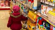 Ihr Kind alle Süßigkeiten in den Wagen laden